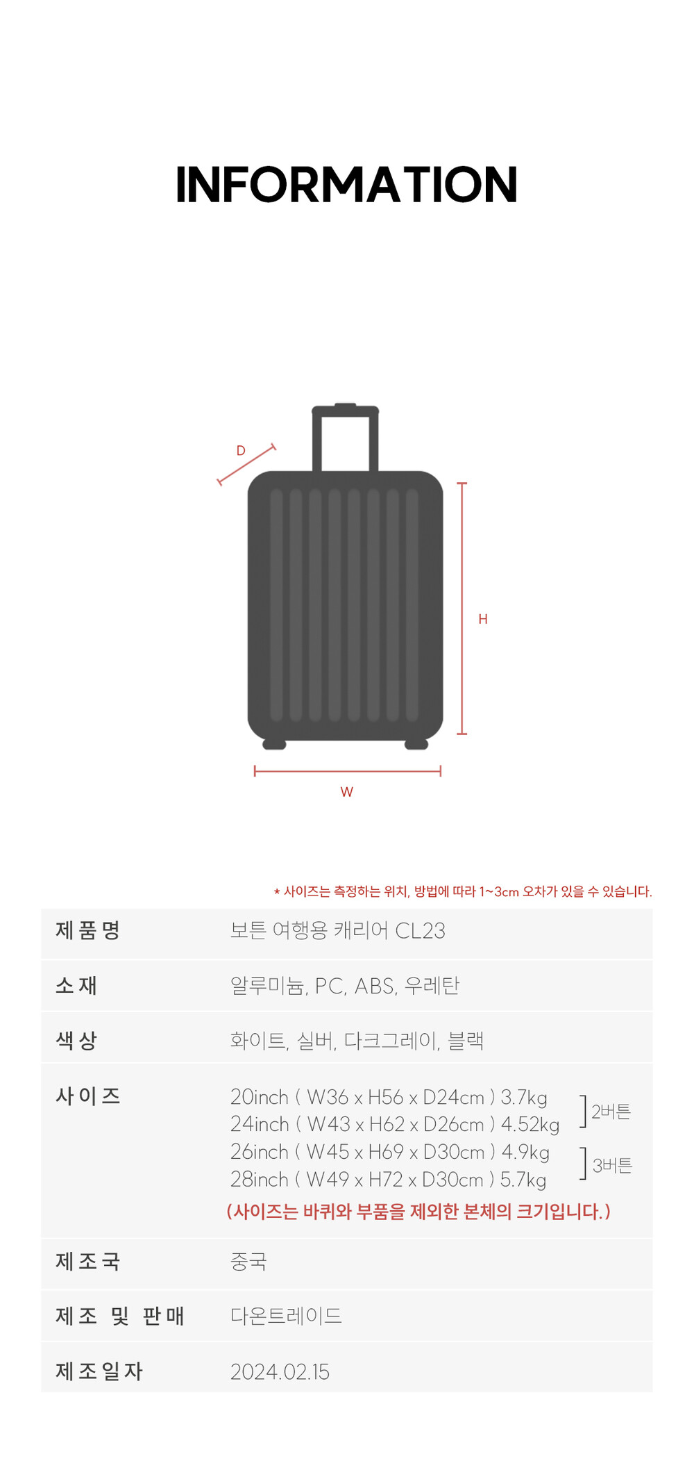 ★진열 상품★_보튼 CL23 튼튼한 유럽여행 해외 신혼 폴리카보네이트 캐리어 24인치 26인치 28인치 사이즈