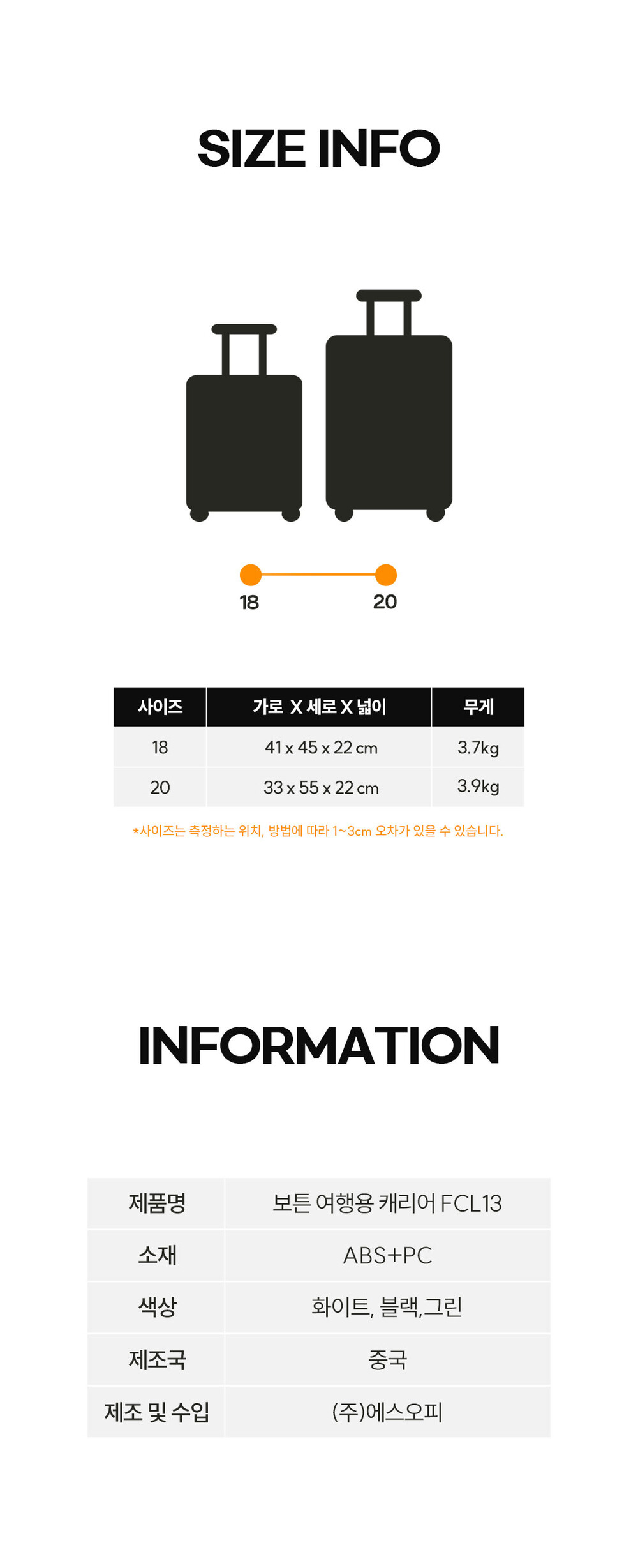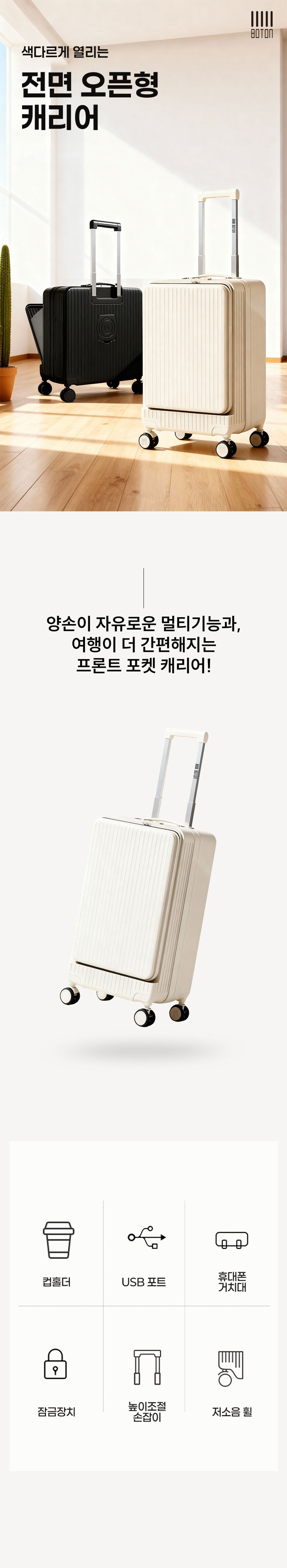 보튼 FCL13 전면 오픈형 기내용 하드 여행용 캐리어