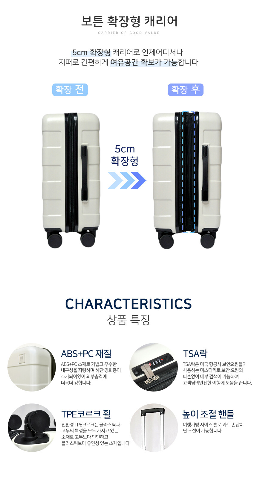 보튼 CL13 확장형 기내반입 캐리어 20인치 소형 사이즈 1박2일 가벼운 가성비가방