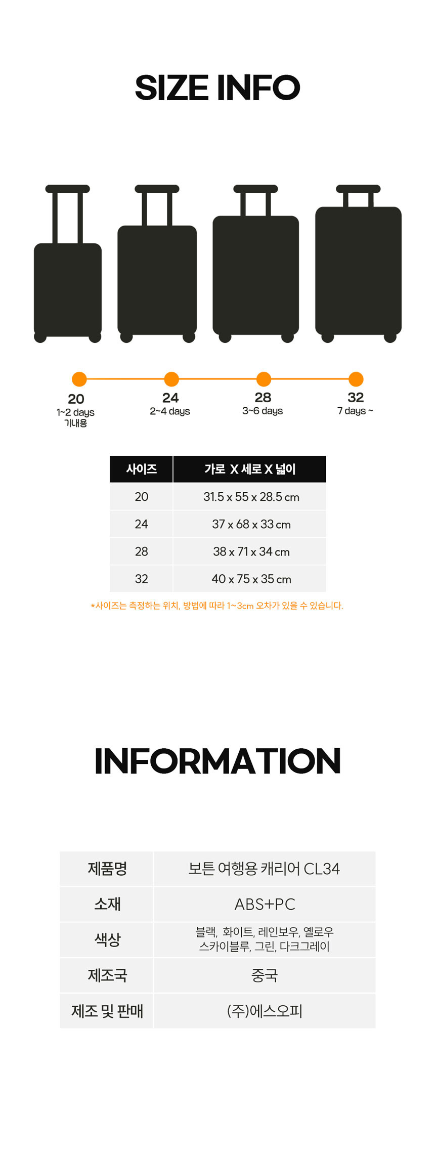 보튼 CL34 여행용 가방 중대형 하드 캐리어