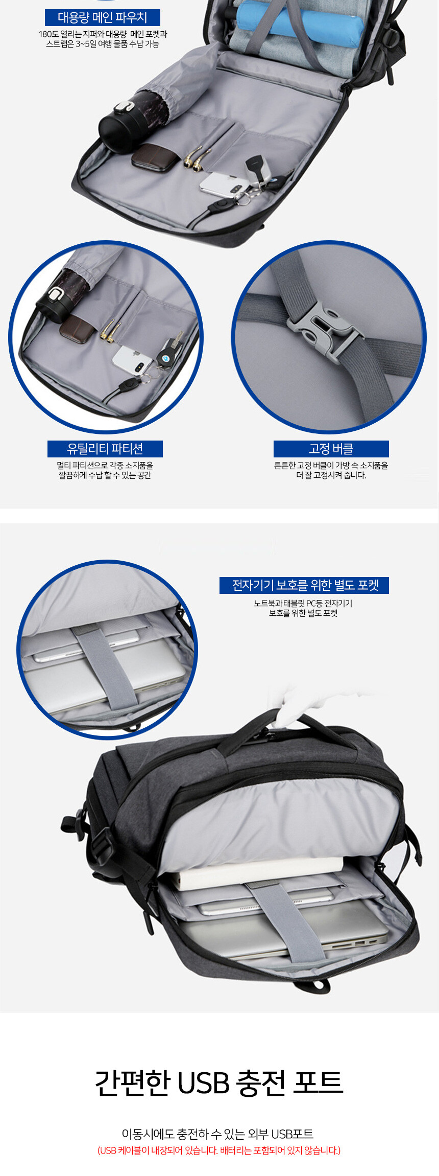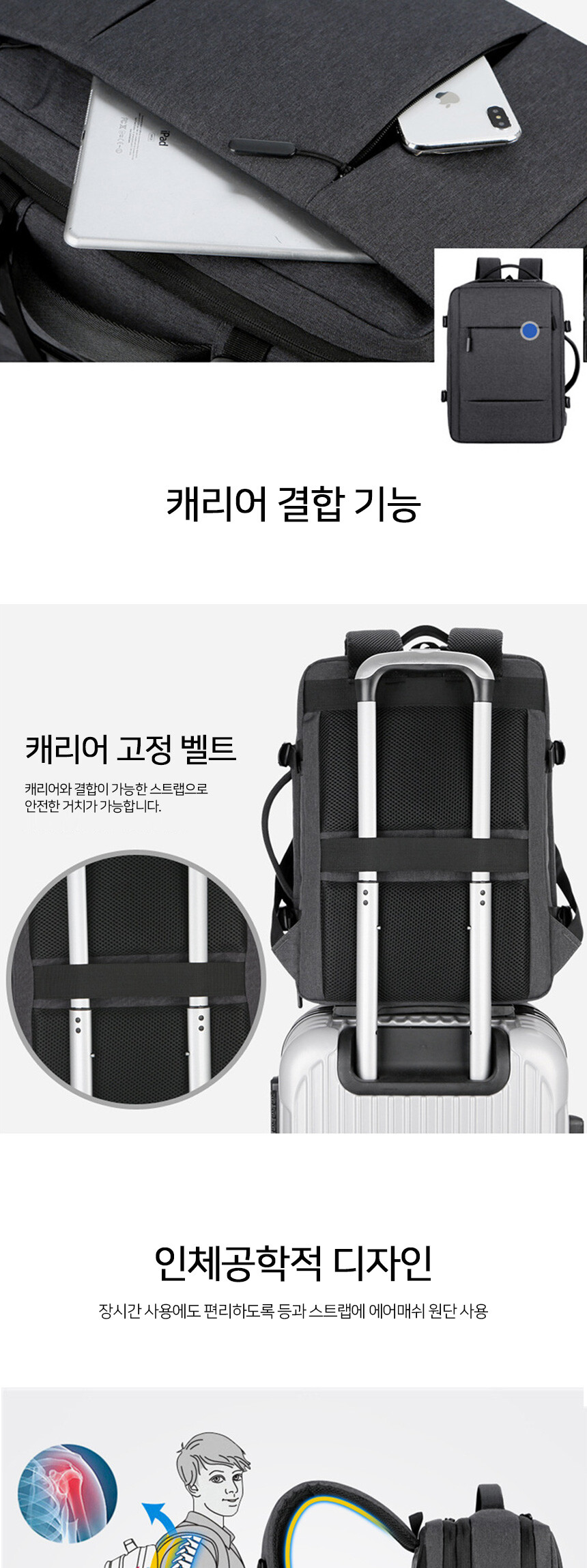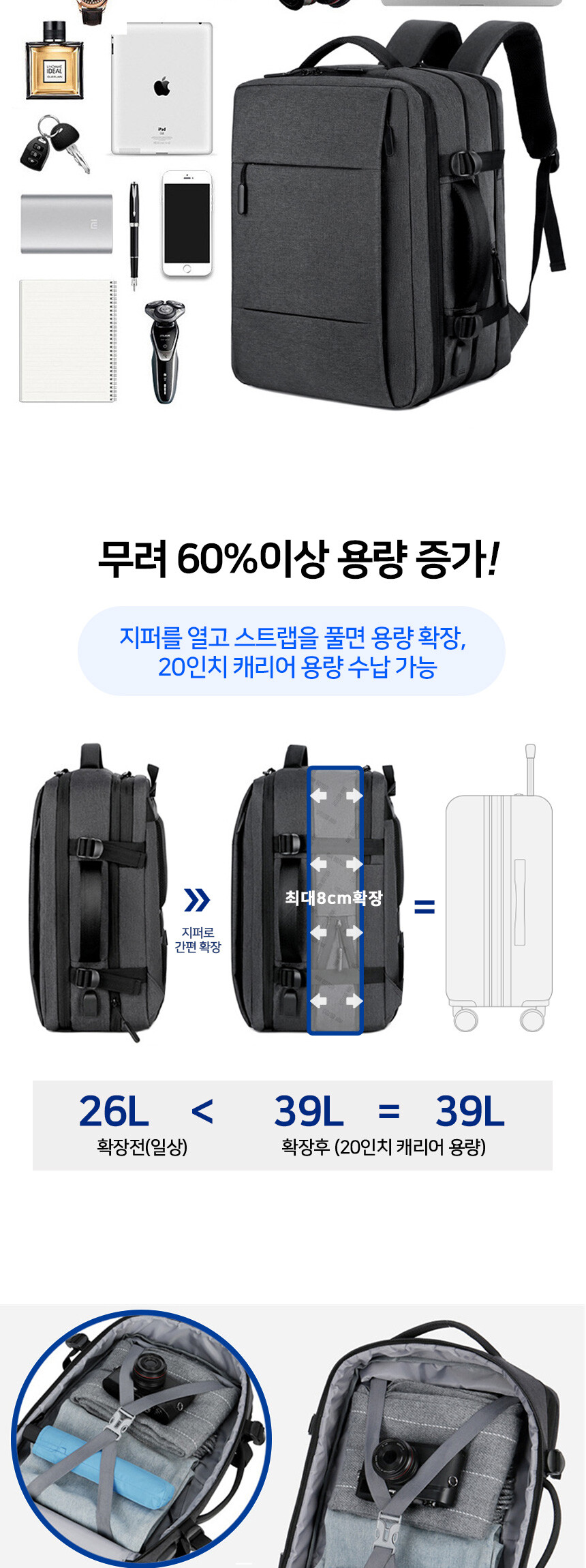 보튼 확장형 대용량 여행용 캐쥬얼 백팩 BP71